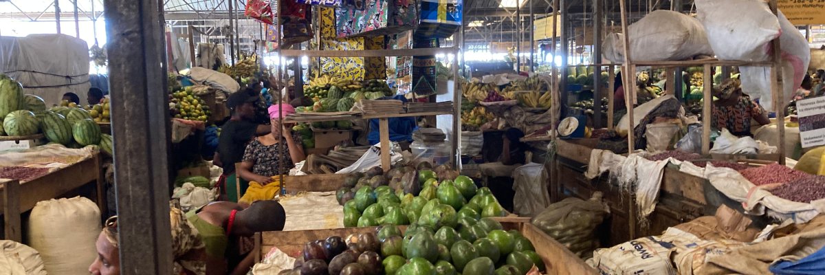 "Come to my shop" - so hallte es heute für viele von uns auf dem zentralen Markt in Kigali, zu dem wir uns vom Akagerapark heute morgen aufgemacht hatten. Sobald wir die ersten Schritte in den Markt wagten, wurden wir von den ruandischen Händlern mit dem Spruch "Come to my shop sister (or brother)" aus allen Gängen angeworben, um die Waren in den verschiedensten Kategorien (Kleidung, Kunst, Obst, Nüsse, Haushalt, ...) zu kaufen. Hierbei waren Verhandlungskünste gefragt und ebenso auch eine gewisse Widerstandskraft gegenüber den doch teilweise sehr penetranten Anfragen. Trotzdem beeindruckte uns die Vielfalt der Angebote und einige von uns kamen mit voll bepackten Taschen nach einer Stunde erfolgreichen Verhandelns wieder zurück zu den beiden Bussen.