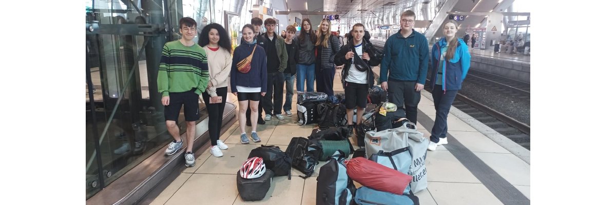 Der erste Tag der Kursfahrt bzw. unserer Fahrradtour hatte es wirklich in sich: Das Programm für diesen Tag mit einer 8-stündigen Zugfahrt und eine darauf folgende Fahrradtour über 70 km und dem abschließenden Zeltaufbau war schon sehr ambitioniert.