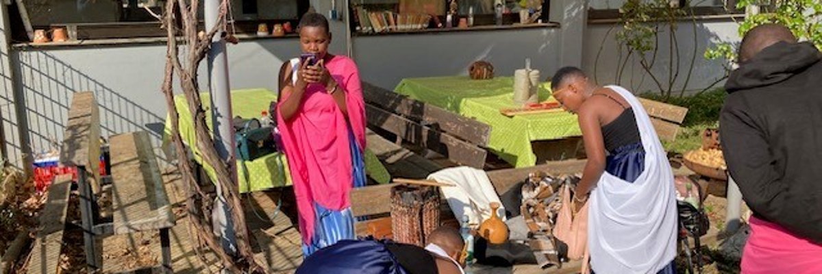 In der großen Pause war dann ein großer Empfang durch die gesamte Schulgemeinschaft auf dem Schulhof angesagt. Fehlen darf dabei nie eine Präsentation traditioneller ruandischer Tänze durch die Gastgruppe - ein ganz besonderes Erlebnis. Es dauerte auch nicht lange, da tanzte die halbe Schülerschaft mit....