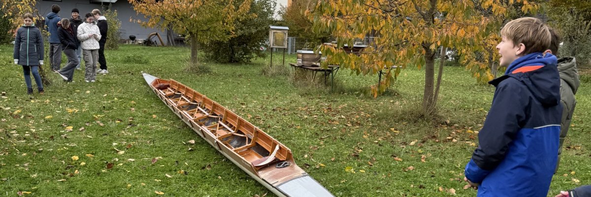 Auf dem Programm standen die Neuanlage des Heckenlabyrinths, die Kontrolle der Spalierapfelhecke, die Planung eines Hochbeets in einem alten Schulruderboot sowie die Pflege des Schulteichs und des bienenfreundlichen Staudenbeetes.