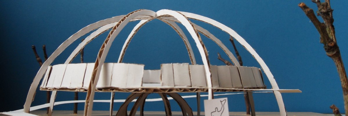 „Ich habe mich für Artikel 3 des Grundgesetzes entschieden. Ich finde es ganz fürchterlich, wenn Menschen diskriminiert werden, weil sie beispielsweise aus einem anderen Land kommen, behindert sind, einen anderen Glauben haben oder weil sie Frauen sind“, erläutert Lukas. Er hat ein rundes barrierefreies Gebäude entworfen, 37 Meter im Durchmesser, dessen eine Hälfte ein einziger großer Raum mit einer raumhohen Fensterfront ist. Vor der Tür gibt es einen überdachten Bereich, der zum Aufenthalt und Austausch einlädt. Innen sind Beratungs- und Personalräume und ein Bereich für die Kinderbetreuung geplant. „Nach der Auseinandersetzung mit dem Grundgesetz haben wir Skizzen entworfen und uns dann an die Umsetzung mit Pappe und Holzstäbchen gemacht“, erklärt der Schüler weiter.