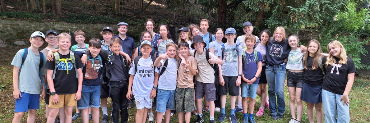 Am Montag, den 23.6. und am Donnerstag den 26.6.2025 haben sich die drei 6.Klassen mit ihren Religionslehrern Herrn Luktisch und Frau Link auf die Spuren des jüdischen Lebens in Lahnstein begeben. Dabei wurde unter fachkundiger Leitung durch Herrn Geil (Archivar der Stadt Lahnstein) der jüdische Friedhof besichtigt und in Eigenregie die Lebensgeschichten der ehemaligen jüdischen Bewohner der Stadt Lahnstein anhand der Stolpersteine kennengelernt. Das Projekt entstammt aus dem Religionsunterricht, in dem sich die Schüler:innen mit der Religion des Judentums beschäftigt haben. Wir danken Herrn Geil für die interessanten Führung sowie Frau Jung und Frau von Löbbecke für die Begleitung.