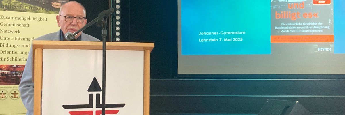 Mit fundierten historischen Erkenntnissen aus den Stasi-Akten über sämtliche Bundespräsidenten der alten Bundesrepublik, von Theodor Heuss bis Richard von Weizsäcker, fesselte Schwan das Publikum – ein generationenübergreifender Kreis aus Schülerinnen und Schülern der Oberstufe, Eltern, Lehrkräften, Mitgliedern des Ehemaligenvereins sowie des Förderkreises Johanniskirche Lahnstein e.V.
