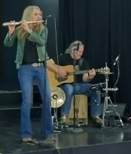 Als ob das alles nicht schon genug des Guten gewesen wäre: Heribert Schwan brachte zur Veranstaltung die Band Kozmic Blue mit Inge (Maggie) und Gerhard Sagemüller aus der Kölner Südstadt mit, die fetzig und cool mit Gitarre, Percussion, Gesang, Querflöte und Mundharmika die Veranstaltung musikalisch begleitete und zu jedem Bundespräsidenten ein passendes zeitgeschichtliches Musikstück spielte und rockte. Die Einnahmen aus den Buchverkäufen spendete Heribert Schwan den beiden Vereinen.
