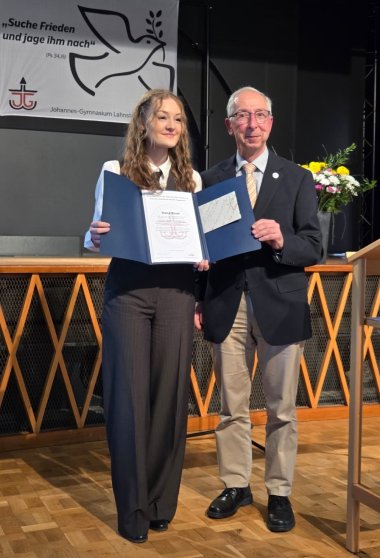Der große, schier nicht endend wollende Applaus der Mitschülerinnen und Mitschüler zum Abschluss der Laudatio ließ erspüren, dass diese Preisverleihung durch breite Akzeptanz getragen wird und Dana Raue sich die besondere Auszeichnung absolut verdient hat.