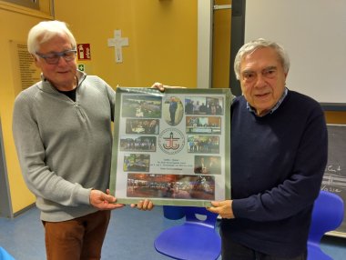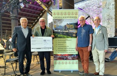 Der Vorsitzende des Ehemaligenvereins Karl Heinz Birtel sowie weitere Vorstandsmitglieder nutzten die Konzertpause, um Prof. Georg Schmitz, Konzertdirektor des Festivals, einen Spendenscheck über 400,-- € zu überreichen. Mit der mittlerweile schon traditionellen jährlichen Spende unterstützt der Verein die Aus-, Fort und Weiterbildung von Musikschülerinnen und -schülern, Musikstudierenden sowie Musikerinnen und Musikern. Gleichzeitig ist sie auch ein Zeichen der Dankbarkeit und Verbundenheit an das Koblenz International Guitar Festival & Academy. Georg Schmitz, der am Johannes-Gymnasium 1977 sein Abitur abgelegt hat und mit dem Johnny eng verbunden ist, lud wieder großzügig Schülerinnen und Schüler, Lehrpersonal und Ehemalige zu Konzerten des Festivals ein. Darüber hinaus besteht das Angebot kostenloser Kooperationen der Hochschule für Musik im Rahmen von Schulveranstaltungen.