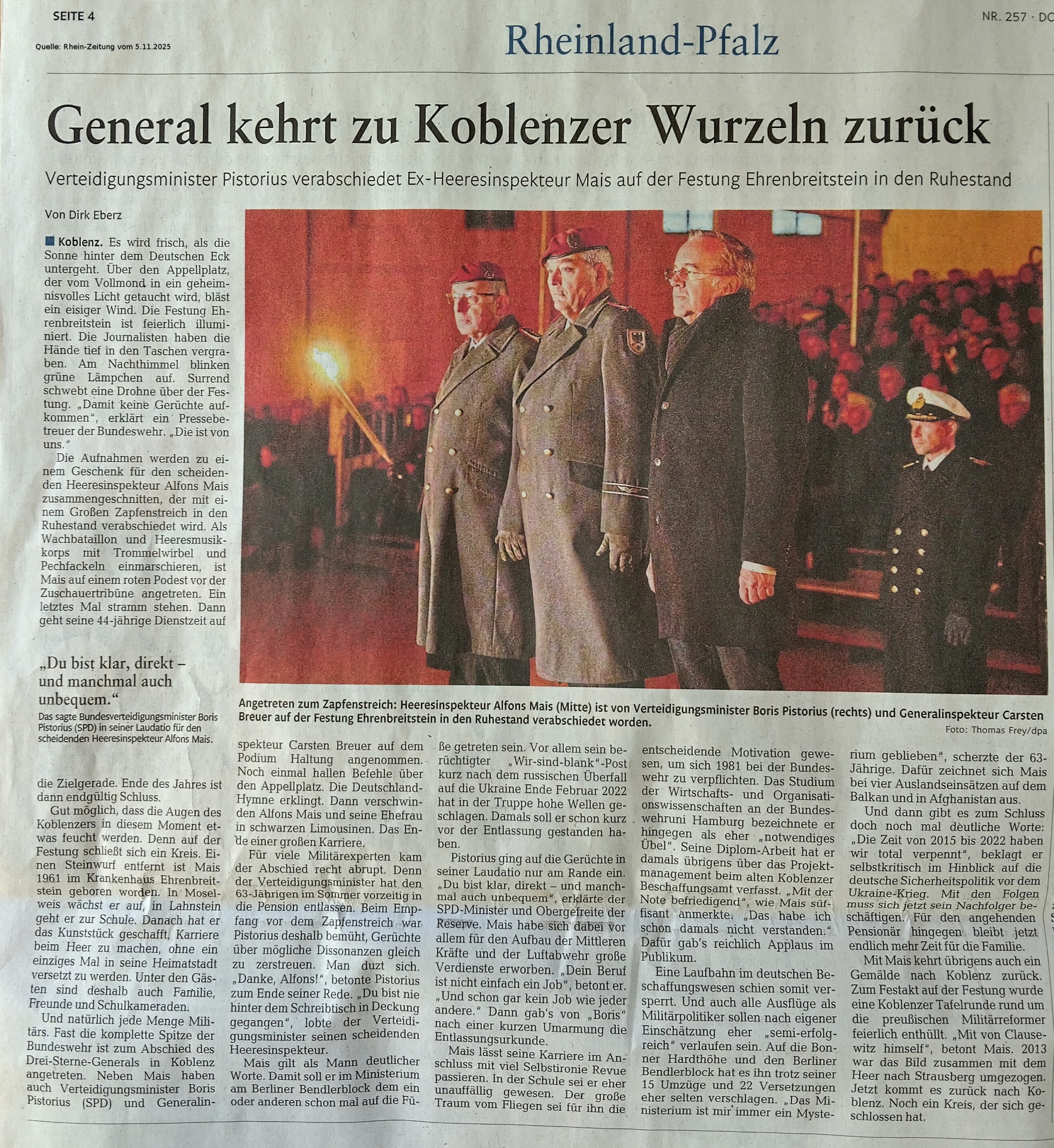 Anbei die Veröffentlichung der Rhein-Zeitung vom 6.11.2025.