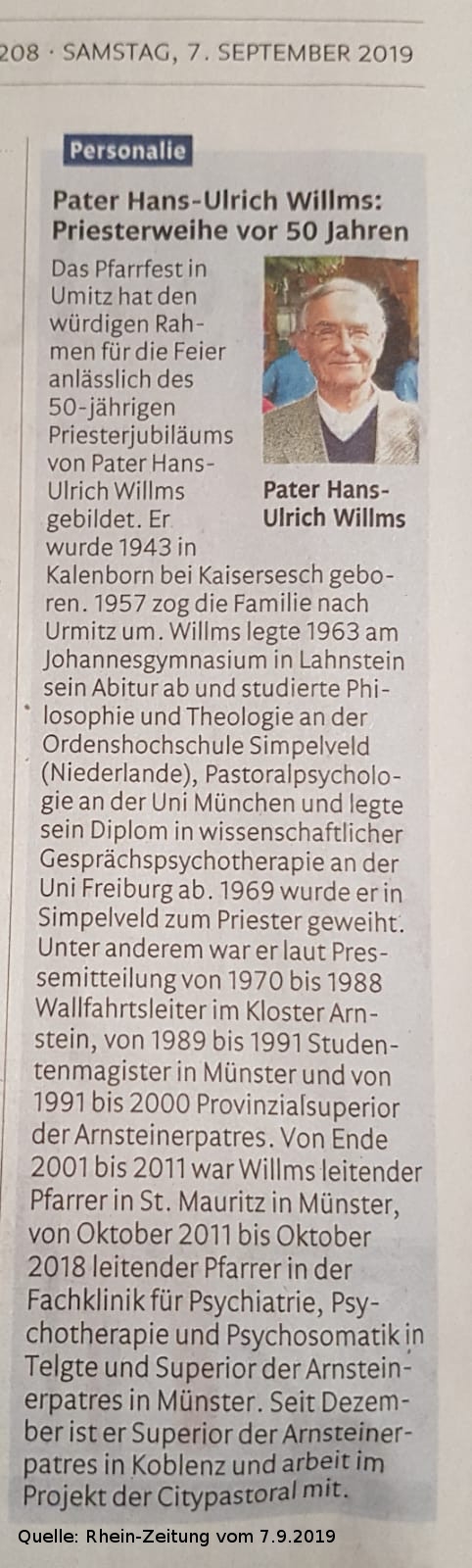 Hans-Ullrich Willms (Abitur 1963), Rhein-Zeitung, 07.09.2019