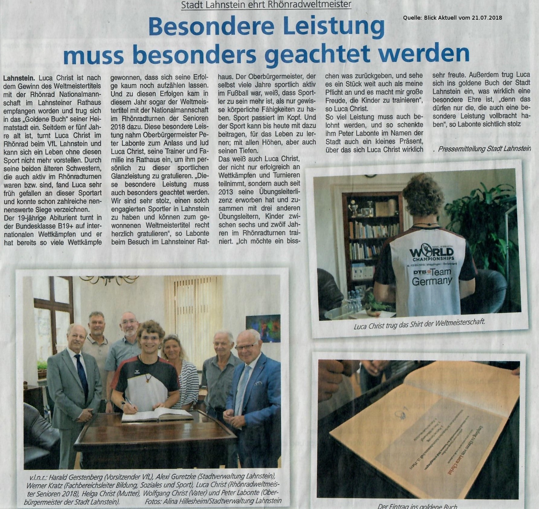 Paul Mannebach (Abitur 2017), Blick Aktuell - Lahnstein vom 10.05.2018